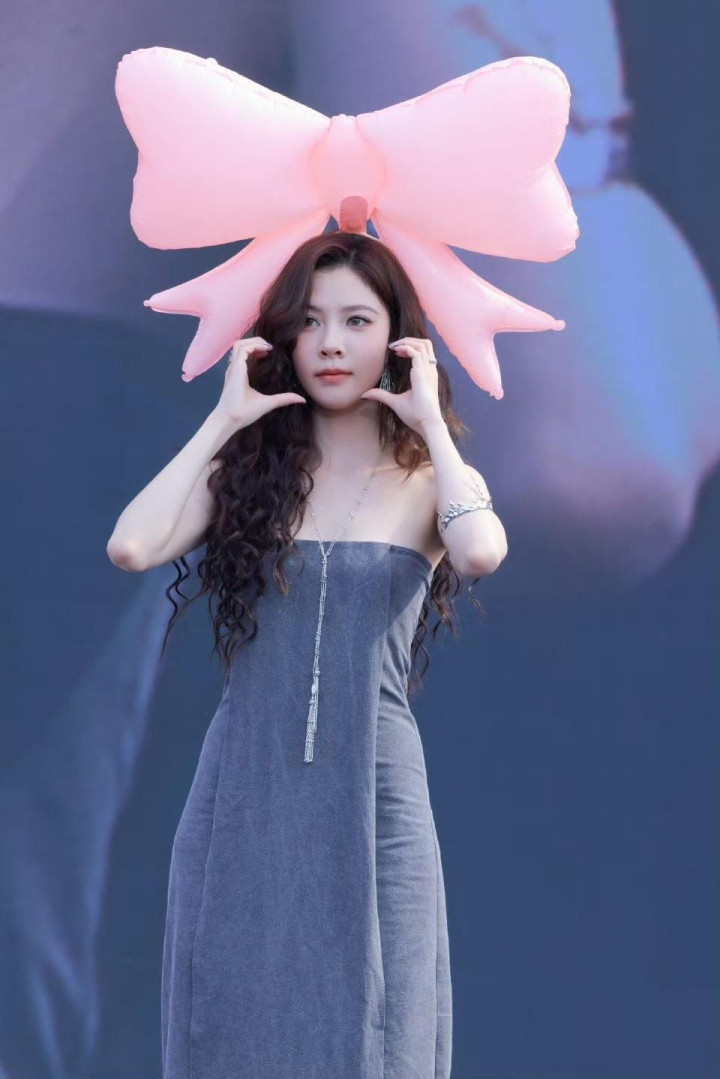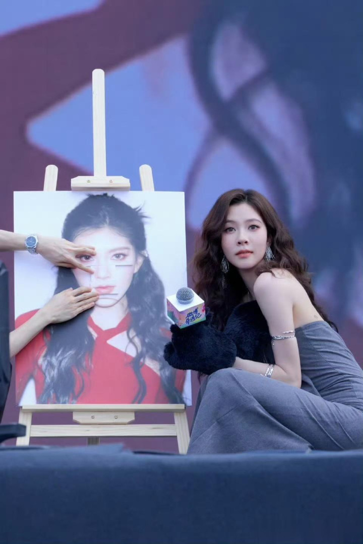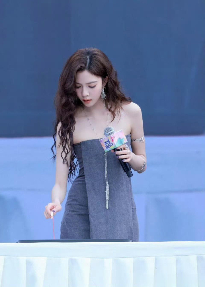 > 宋妍霏灰色抹胸裙造型, 又美又有氛围感!