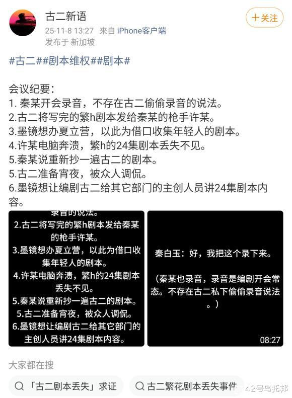 古二控诉《繁花》剧组长期压榨:身患渐冻症仍被要求超负荷工作,月薪仅3000元;剧本贡献遭剽窃,仅获“前期责任编辑”署名;维权期间,剧组向其八旬外婆寄送律师函施压。