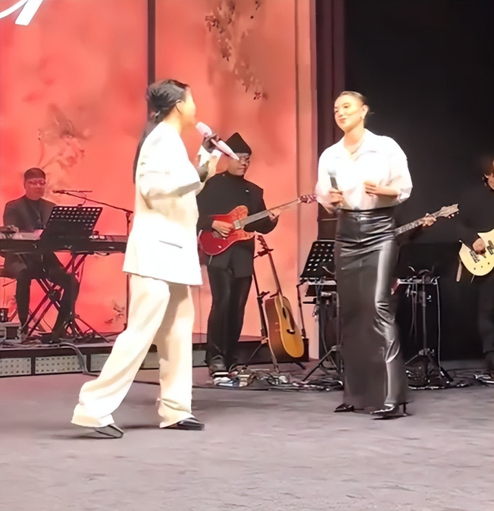 而且那英还在晚宴上唱了一首《一笑而过》,直接烘托了现场的气氛,把晚宴硬生生变成了家宴,就连宋佳都被拉上台唱起了歌,氛围十分和谐。
