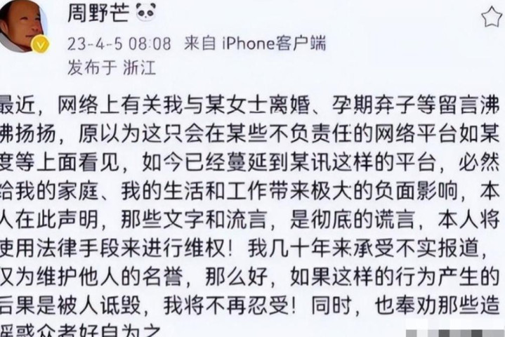 但不得不说老周人品杠杠的,背黑锅这么多年也未曾说过前妻一句坏话,