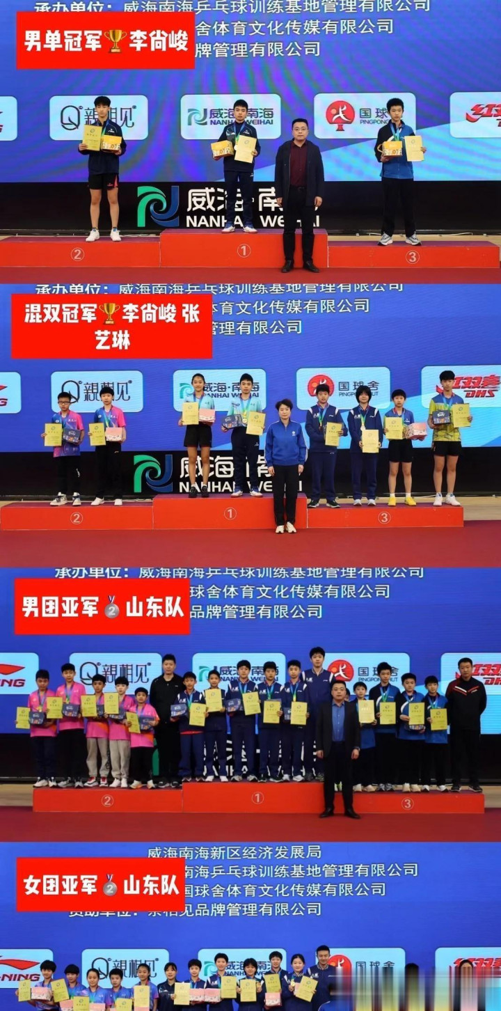 李尚峻在国内赛事中的表现同样可圈可点。 2025年,他在全国少年锦标赛U13组中获得男单亚军,并在团体赛中帮助山东队打进决赛。 这些成绩表明他的实力具有持续性,而非偶然爆发。