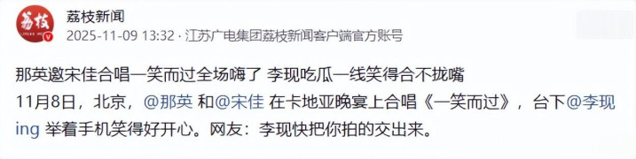 那英突然拽宋佳上台合唱,没彩排居然把《一笑而过》唱成大型KTV现场,台下李现笑到露牙床,白敬亭直接坐沙发靠背上当气氛组。