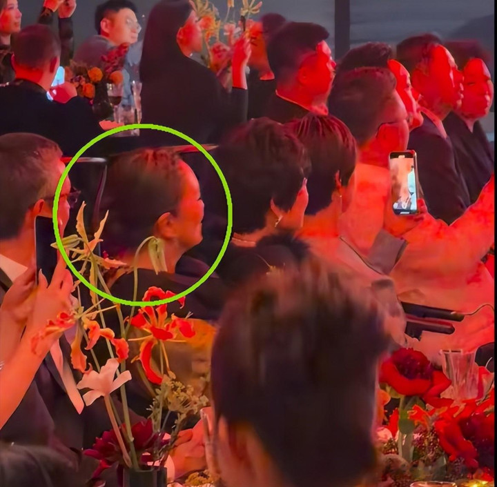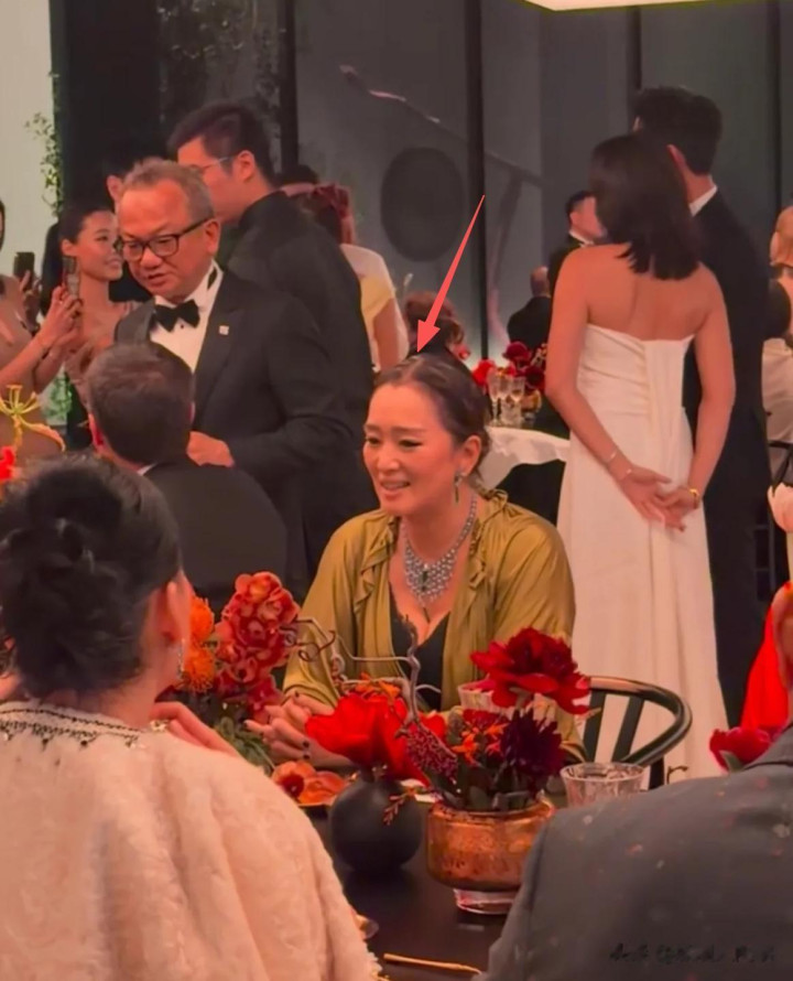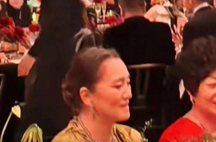 入席之后,巩俐的座位也是一如既往的前排,侧面的生图看起来更加真实一些,巩俐的下巴和嘴已经显出了老年人的那种“内缩”感,像个小老太太。