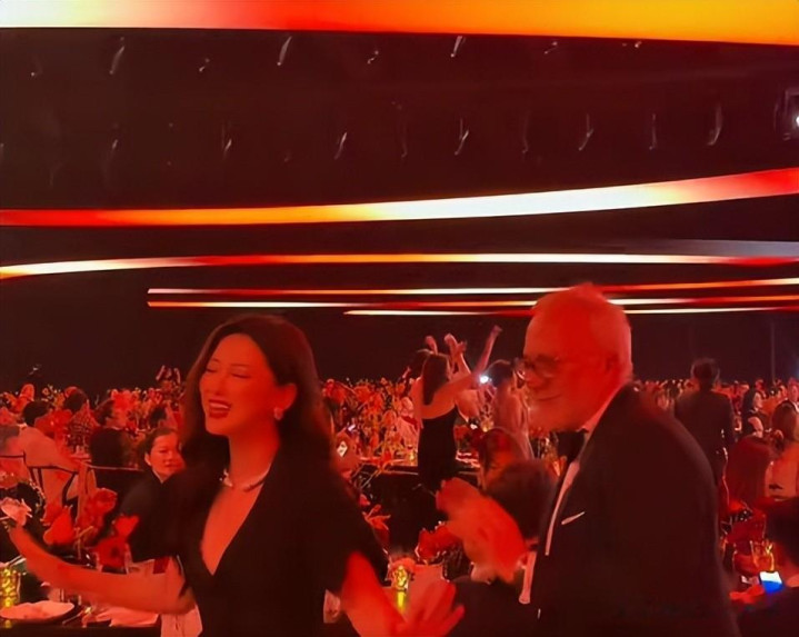 晚宴现场,朱珠一点都不拘束,跟随着音乐肆意扭动身体,旁边还有一位十分绅士的老头为其鼓掌,看来也是被朱珠给迷住了。