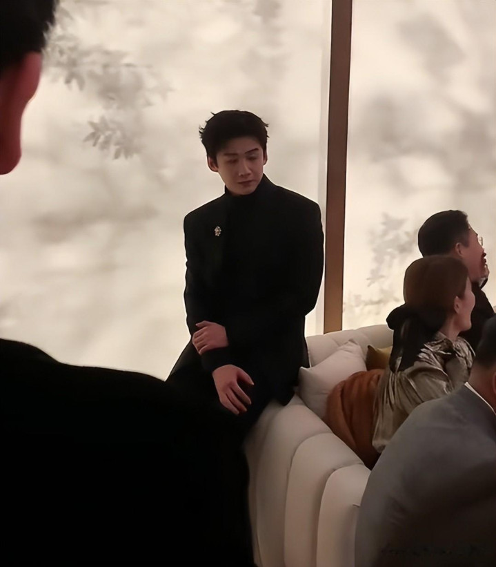 除了李现,白敬亭其实也到场了,只不过他胸前的饰品更小,相对应的整个人更是连一个座位都没混上,只能坐在沙发扶手上,默默看着大家。
