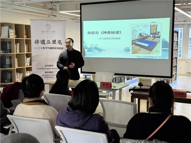 在秋冬交替、霜染草木的霜降时节,由北京市文联音乐家协会古琴文化研究会与三里屯街道办事处联合主办的霜降二十四节气雅集 ——《神奇秘谱》琴书雅会在三里屯街道图书馆温情启幕。本场活动由北京古琴文化研究会副会长、三里屯非遗会客厅负责人张垚主持,这场集节气文化、非遗传承于一体的雅会,以 “霜降品韵,琴谱寻踪 —— 纪念《神奇秘谱》诞辰 600 周年” 为主题,为现场观众编织了一幅兼具时序之美、艺术之魂与民族之情的文化画卷。