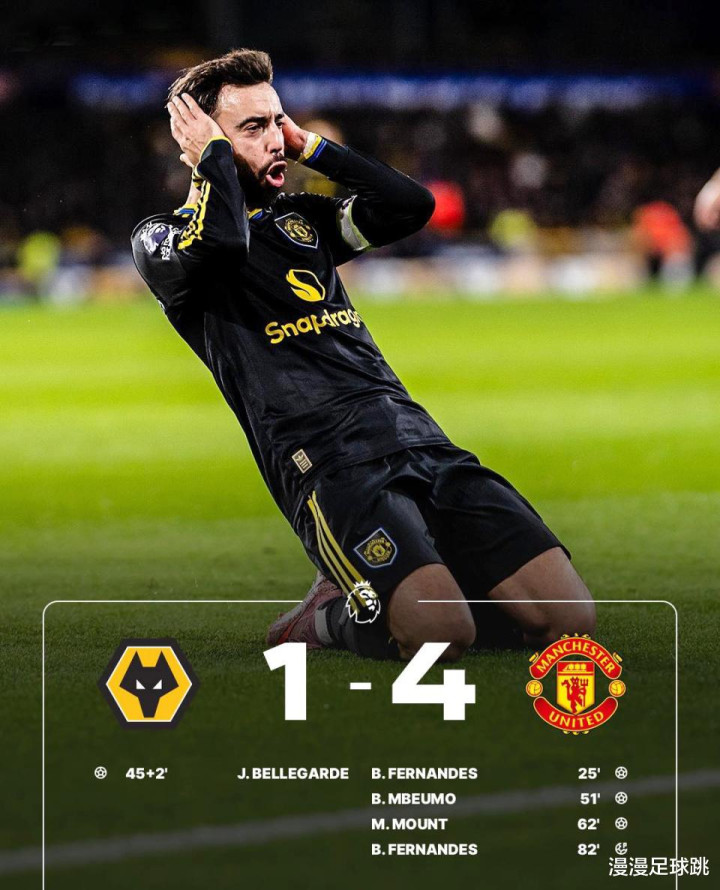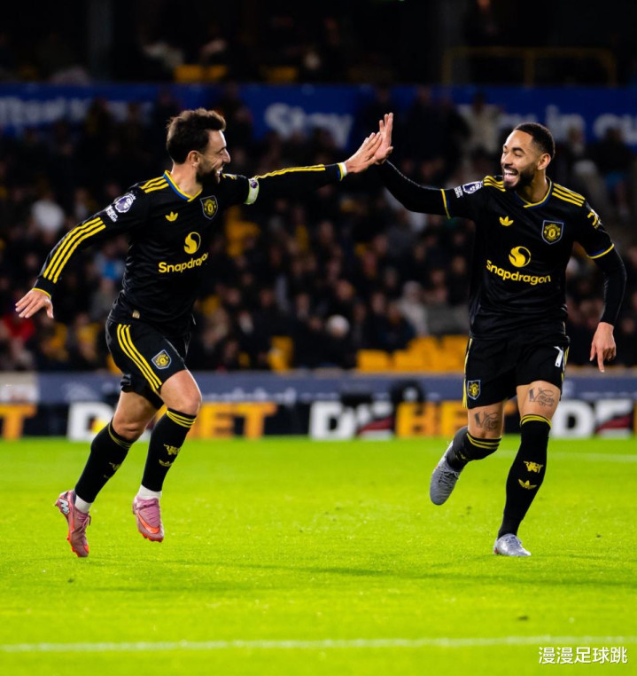 比赛一开始,曼联就反客为主,率先主动发起进攻,第25分钟,狼队后场犯错,库尼亚断球突入禁区,横传找到了滑倒又急速起身的费尔南德斯,葡萄牙中场顺势将皮球送进网窝,曼联1-0领先;