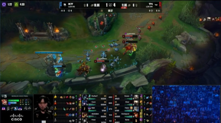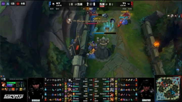 直播吧11月9日讯 2025全球总决赛冠亚军决赛,由KT对阵T1!