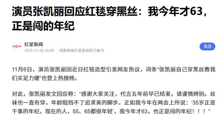 张凯丽的这次热搜事件,看似是一场关于穿着的争议,实则反映出社会对于公众人物,尤其是年长女性形象的刻板期待。