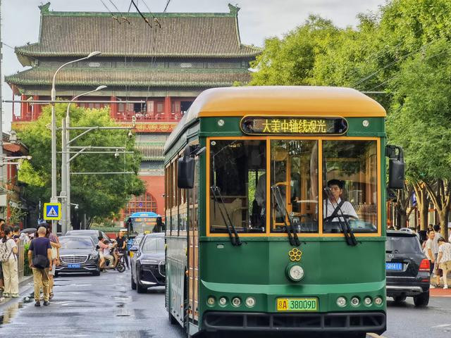 大美中轴线观光巴士成为暑期亮点。该线路采用新型仿古铛铛车,分日游、夜游双线运营,邀游客沉浸式品读古都千年文化底蕴。