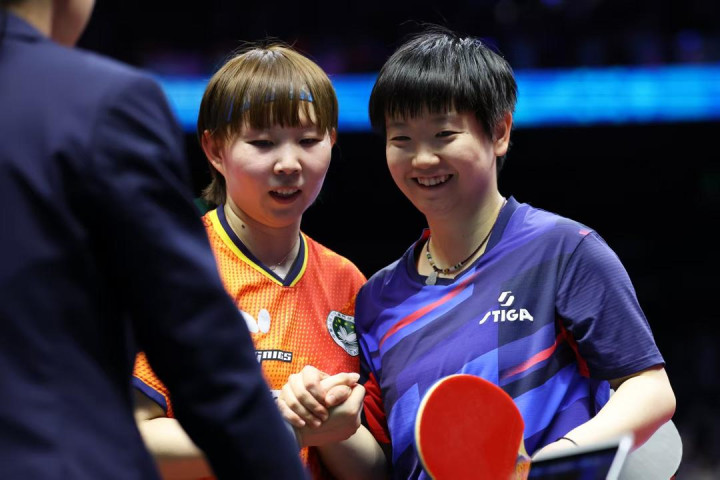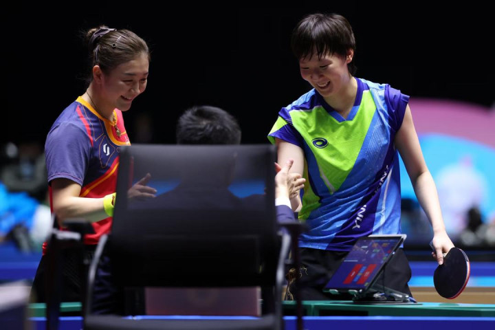 朱雨玲感叹自己能给孙颖莎制造麻烦,但已经无法击败她。新华社发