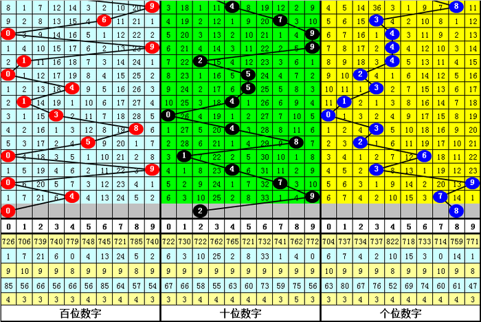 号码跨度:在第306期同期奖号中,跨度开出频次分别为:跨度5开出5期,跨度4开出4期,跨度3开出3期,跨度2开出2期,跨度0、1、6、7、8、9开出1期。去年同期开出8,今年同期注意跨度重复开出,继续关注跨度8。